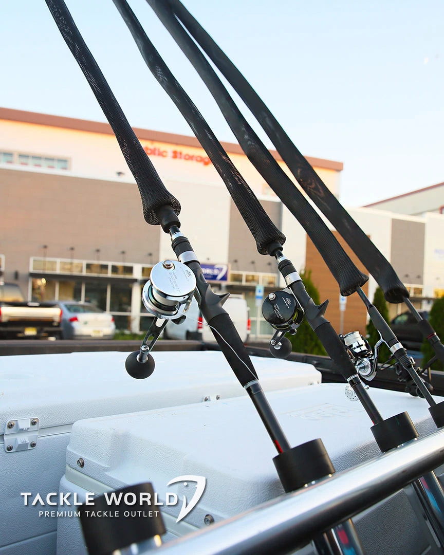Quality rods today are an investment. With today’s technology and engineering of lighter and stronger rods comes with thinner thickness rods. Protect your rods from bumping, scratching & etc against hard surfaces – disclaimer: will NOT protect against car doors! When transporting multiple rods, this rod sleeve will prevent line tangles as well if you like your rods rigged & ready to go. Available now for both Spin & Conventional rods up to 8 feet long! The rod sleeves are made of special fibers that have virtually no memory so will return back to normal shape when not used.