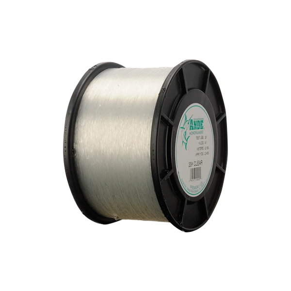 ANDE Premium monofilament is our standard production monofilament and is perfect for the vast majority of anglers. It is a medium-soft monofilament with excellent tensile and knot strength and it is very abrasion resistant. The Premium monofilament comes in three colors, clear, pink and dark green and is available in tests from 2 to 400 pound.