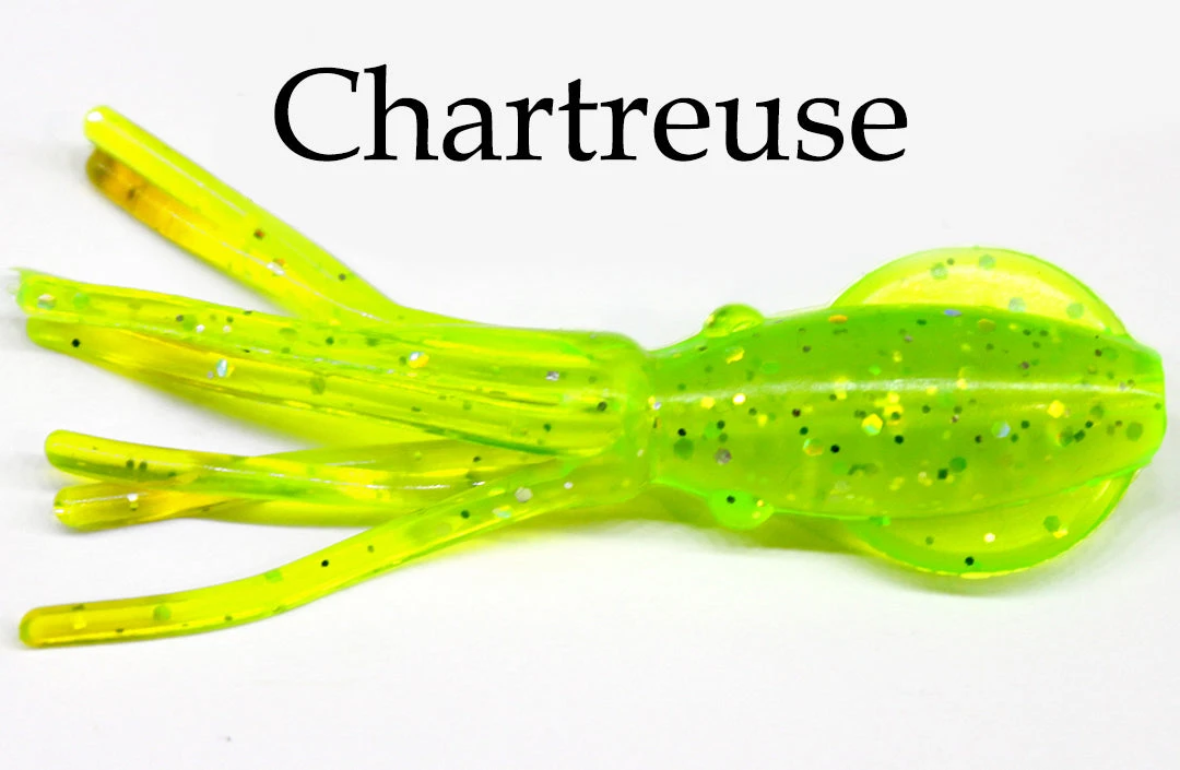B2Squid Squid Bodies – These soft, lifelike, solid body squid lure has a hole thru center for easy rigging. A favorite meal for nearly every saltwater game fish as well as many freshwater fish. These high-tech hootchies catch more fish. Customers have used them for fishing Salmon, Bottom/Rock Fish, Lake Trout, Halibut, Bass and many others! Anything that eats squid will want to eat this lure. Soft, lifelike, solid body with 3/32 hole thru center for easy rigging.Â