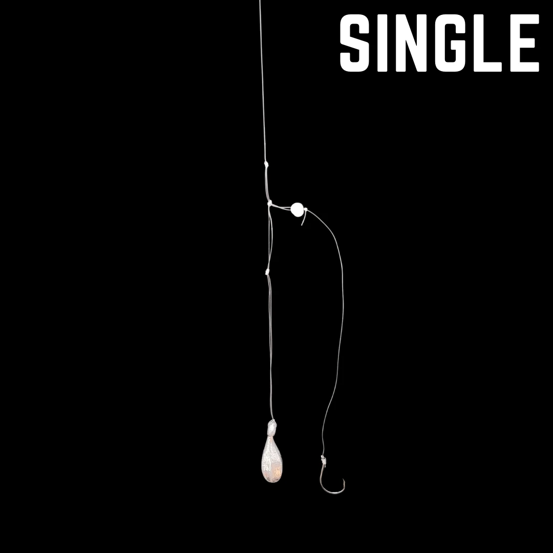 - Single – single hook rig primarily used on half a crab.