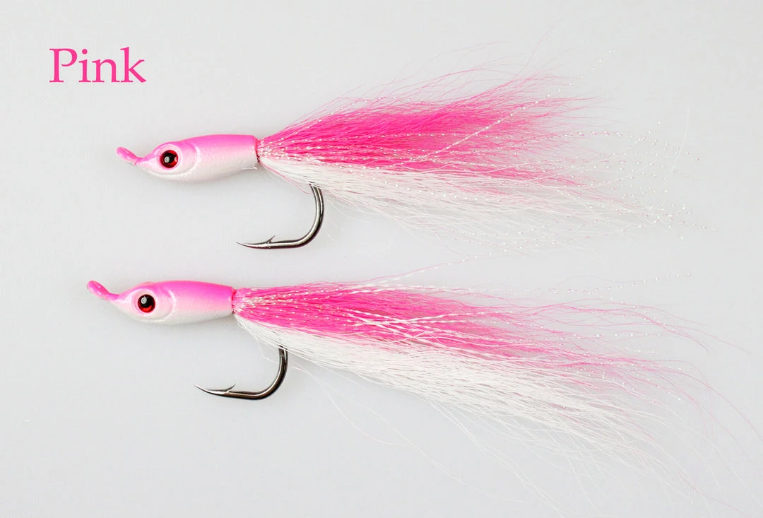 Jigging World Fluke Candy teasers are irresistible to Fluke. Secure on your dropper loop on a hi-lo rig, add a piece of your choice of soft [Berkley Gulp products work best] and it’s almost guaranteed a Fluke aka Flounder strikes. These teasers have a natural buoyancy which provides a natural swimming action. These also work amazing for Black Sea Bass & Striped Bass as well.