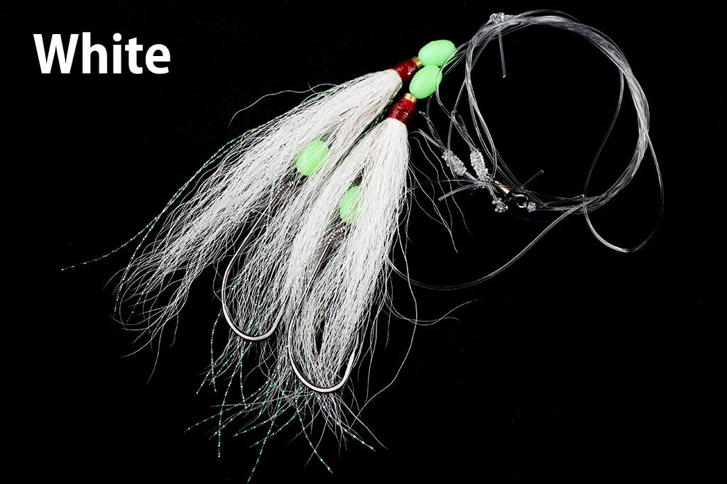 Jigging World Hi-Lo Bucktail Rigs are rigged and ready to help you catch your next doormat Fluke! Pretied with premium bucktail and snelled with a baitholder hook, just add a sinker on the sinker loop on the bottom and put on some bait & gulp and catch some fish. These rigs will work great for Black Sea Bass, Grouper, Cod, Haddock, and other bottom fish as well.