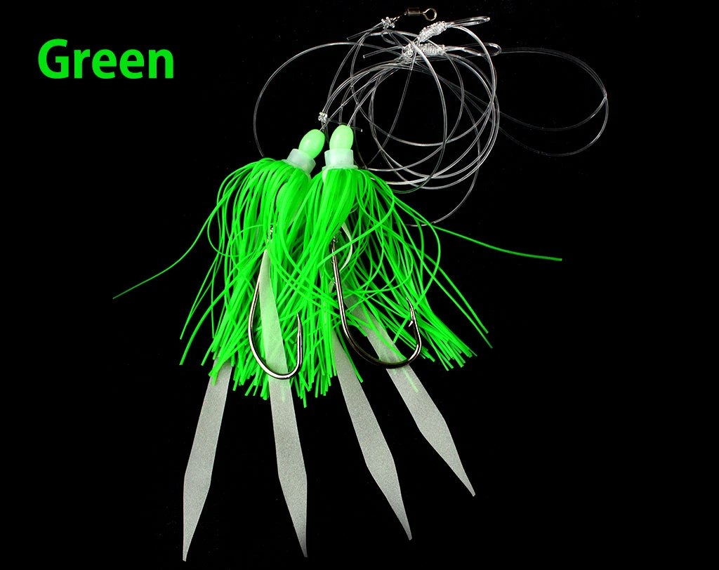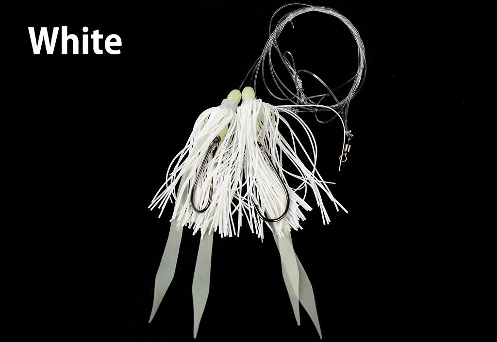 Jigging World Hi-Lo Silicone Skirt Rigs are rigged and ready to help you catch your next doormat Fluke! Pretied with a high-quality silicone skirt and snelled with a baitholder hook, just add a sinker on the sinker loop on the bottom and put on some bait & gulp and catch some fish. These rigs will work great for Black Sea Bass, Grouper, Cod, Haddock, and other bottom fish as well.