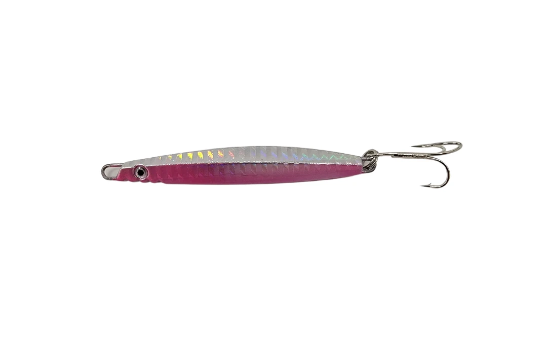 Jigging World Albie Candy Jigs are metal thin profile jigs imitating small baitfish that can either be dropped to the bottom or skimmed across the top of the water. These jigs work perfectly for the likes False Albacore, Bonito, Black Sea Bass & more! Available in 2 sizes and 3 colors. The original treble hook will suffice for the smaller gamefish, but if targeting bigger gamefish such as Bluefish, Striped Bass & Tuna, we recommend upgrading the hardware.