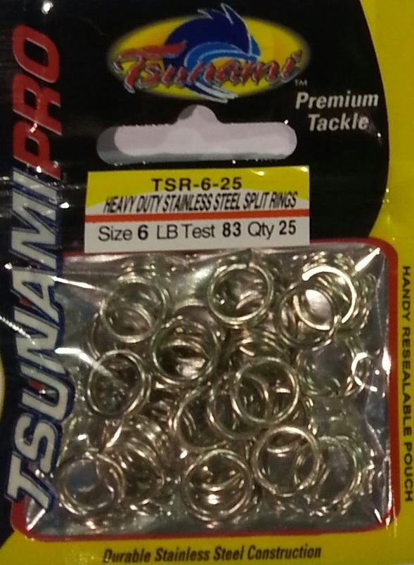 These Tsunami heavy-duty split rings are perfect for connecting your hooks to lures. Durable Stainless Steel construction. Comes in a handy resealable pouch. They are corrosion-resistant and quick to spring-back after opening. The best in premium terminal tackles for your tackle box.