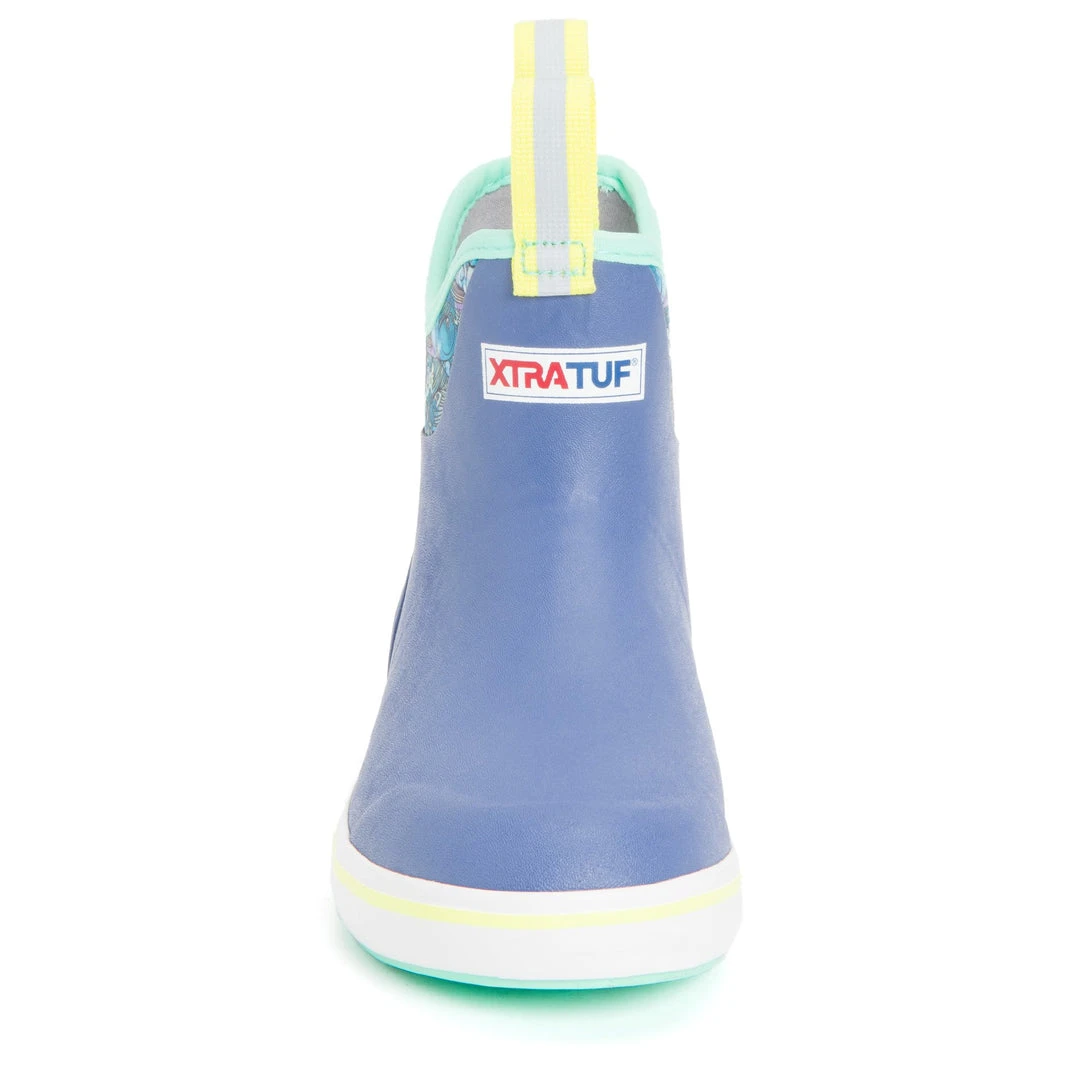 Xtratuf Women’s Fishe Wear 6″ Ankle Deck Boots Purple / Totally Tarpon – This Women’s Ankle Deck Boot features an original print designed by Fishe®Wear, an Anchorage, Alaska based company whose mission is to create comfortable, functional, and fashionable fish-inspired apparel and gear for women. This Women’s Purple Ankle Deck Boot features the Totally Tarpon design, which is part of the Fishe Wear Saltwater Line, is inspired by this great fish whose size and fight dubs them the “other silver king”.